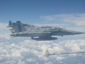 Uma fila diferente é a de F-5EM prontos para dar partida com a ajuda de ar sob pressão do KC137. É a chamada Partida Assistida.