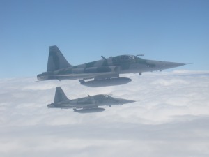 Tudo em nome da segurança de vôo, já que é mais fácil passar horas dentro de um espaçoso avião, como o KC-137 do Esquadrão Corsário, uma aeronave originalmente construída como transporte de passageiros, do que dentro da compacta cabine de um F-5EM.