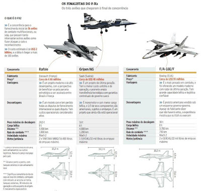 Em época de vacas magras na economia mundial uma venda de 2,2 bilhões de euros não pode ser desprezada. Essa é a quantia envolvida no projeto F-X2, das Forças Armadas brasileiras, para a compra de 36 caças multiemprego. Três empresas - a norte-americana Boeing, a francesa Dassault e a sueca Saab - foram selecionadas pela Força Aérea Brasileira (FAB), todas prometendo transferência tecnológica e fornecimento do código-fonte de seus softwares, condições exigidas pela FAB. A expectativa é que a escolha definitiva seja feita no segundo semestre, e os caças deverão ser entregues a partir de 2014, com estimativa de vida útil de, no mínimo, 30 anos.