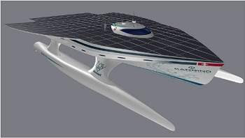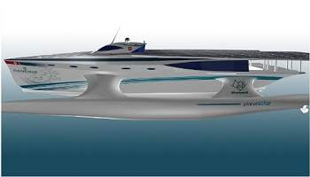 O PlanetSolar é um catamarã que deve navegar utilizando unicamente a energia solar. Partes móveis do casco conseguem expor até 500 metros quadrados de painéis solares fotovoltaicos, que deverão gerar 103 kW de energia.