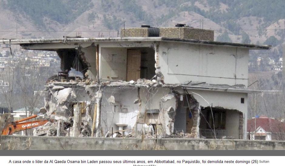 "O processo de demolição do complexo que começou no sábado à noite foi concluído no domingo à noite," disse um oficial das forças de segurança em Abbottabad. "Toda a estrutura do complexo foi derrubada. Na verdade, demorou um pouco já que o processo de demolição e remoção dos detritos aconteceu simultaneamente."