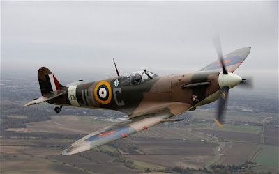 (*) O Spitfire é o clássico dos clássicos em termos de aviões de combate. Junto com o Hawker Hurricane derrotou a Luftwaffe alemã nos meses que se seguiram à derrota no continente e a evacuação de Dunquerque. É também um dos mais lindos aviões que já se desenhou.