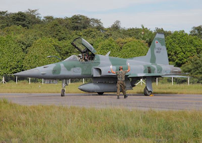 Na Base Aérea de Santa Cruz, na zona oeste da cidade, caças F-5EM e