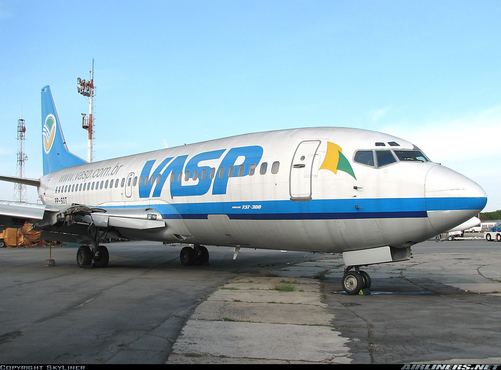 PP-SOF: Boeing 737-33A - c/n 25011 l/n 2012: Veio novo para a Vasp. Primeiro voo em 01/03/1991, Entregue à Vasp em 10/04/1991 e devolvido em 24/12/1992. Operou em diversas empresas e seu último operador foi a Eastern Skyjets, registrado A6-ESS. Estocado desde 05/2014, situação atual e localização incertas;